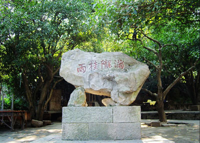 满觉陇,位于杭州西湖以南,南高峰与白鹤峰夹峙下的自然村落中,是一条山谷。五代后晋天福四年建有圆兴院,北宋治平二年改为满觉院,满觉意为“圆满的觉悟”,地因寺而得名。满觉陇沿途山道边,植有七千多株桂花,有金桂、银桂、丹桂、四季桂等品种。每当金秋季节,珠英琼树,百花争艳,香飘数里,沁人肺腑。如逢露水重,往往随风洒落,密如雨珠,人行桂树丛中,沐“雨”披香,别有一番意趣,故被称为“满陇桂雨”。 诗云: 白鹤峰高涧水生,溪流跌荡云雾腾,玉树缤纷飘金雪,圆觉馥郁来香风; 龙井青茶丹霞落,家弄竹奁糯米蒸; 满陇尽是桂花雨,一路芬芳入杭城。 在满觉陇村、石屋洞前一带。满觉陇因古有吴越佛寺满觉院(初名圆兴院)而得名。满觉陇俗称满家弄,明清时盛产桂花,为西湖著名赏桂胜地。抗日战争杭州沦陷期间,桂花树被大量砍伐,仅剩少数农家屋前屋后几株老树。抗日战争胜利后稍有恢复。1950年后,新种植一批桂树,至1955年前后,连同老树,数达万株,其中树龄最长的约200年,最大植株盛花年可收桂花一石,桂花成为当地村民重要的经济收入。 60年代初,杭州市园林管理局在石屋洞旁建茶室、小卖部,在新建的门楼两旁,置雕塑圆窗。1980年,又在石屋洞西侧,扩建比石屋洞旧有范围大二倍的院落,内建三座高低错落、歇山翘角屋面的“桂花厅”。主厅(茶室)四周,卷棚回廊,配以青石雕花栏杆,粉墙上点缀“飞天”漏窗,内庭掇山理水,与原有景物浑为一体。傍山筑石级通石屋洞顶,半山腰建有结构新颖的“吟香亭”,左通耸立洞顶、似可擒云的“摛云亭”。新院落与石屋洞前庭既隔又联,互相映衬。1983年,桂花以香飘十里的优势,又是杭州乡土树种,被评选为杭州市市花。此后满觉陇、石屋洞赏桂更甚,再现清代丁立诚《满觉陇担桂》诗中“桂花蒸过花信动,桂花开遍满觉陇,卖花人试卖花声,一路桂花香进城”的情景。